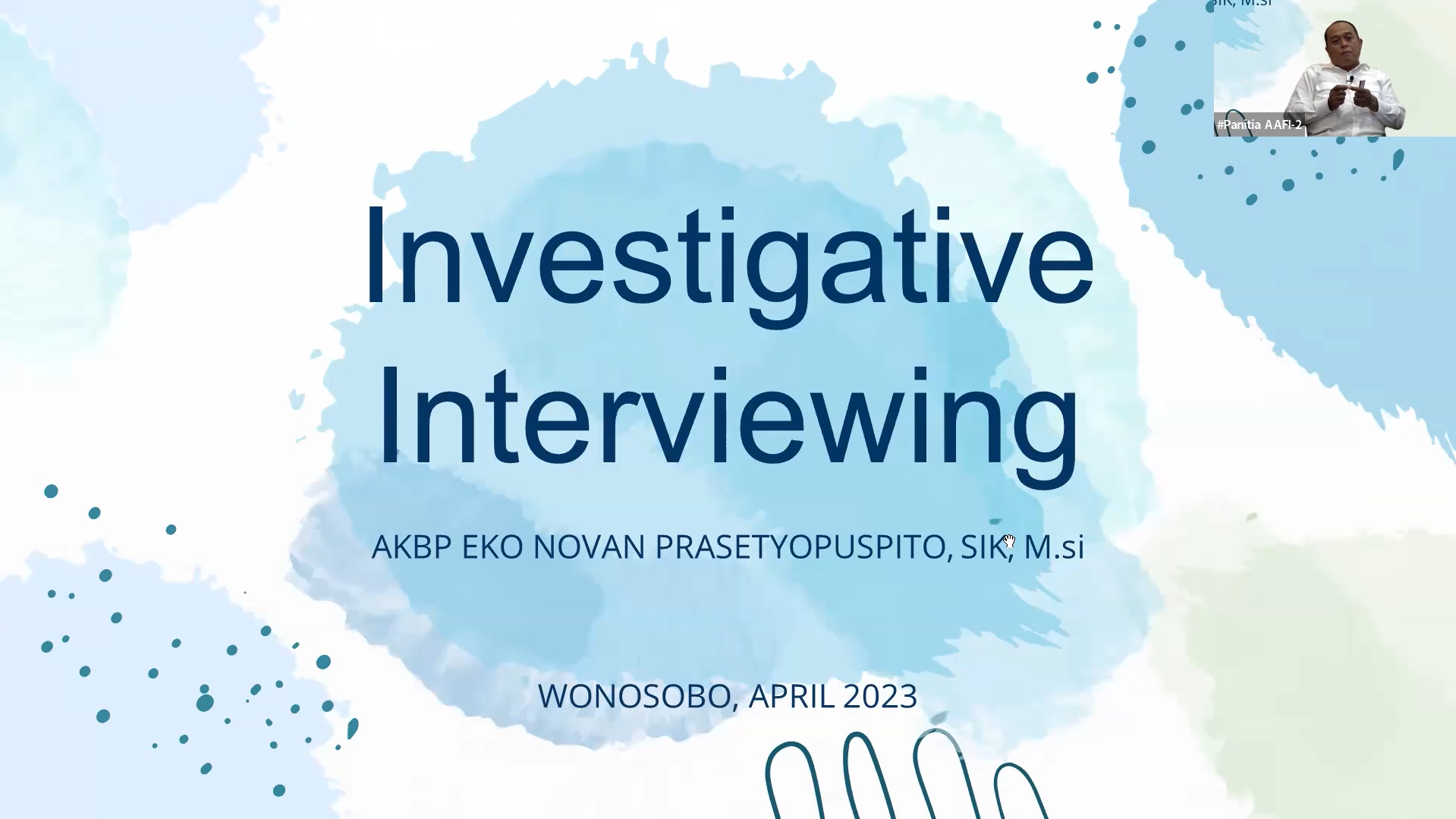Berdasarkan fakta tersebut, Asosiasi Auditor Forensik Indonesia (AAFI ENDOKISI) menggelar webinar bertajuk Investigative Interviewing I yang menghadirkan Bapak AKBP Eko Novan Prasetyopuspito, S.I.K, M.Si. (Kepala Kepolisian Resort Wonosobo) sebagai Narasumber dan Ibu Yezie Dwi Gumay Putri, S.Psi., M.Psi., CMTNLP (Asesor Assosiate PLN) selaku Moderator.