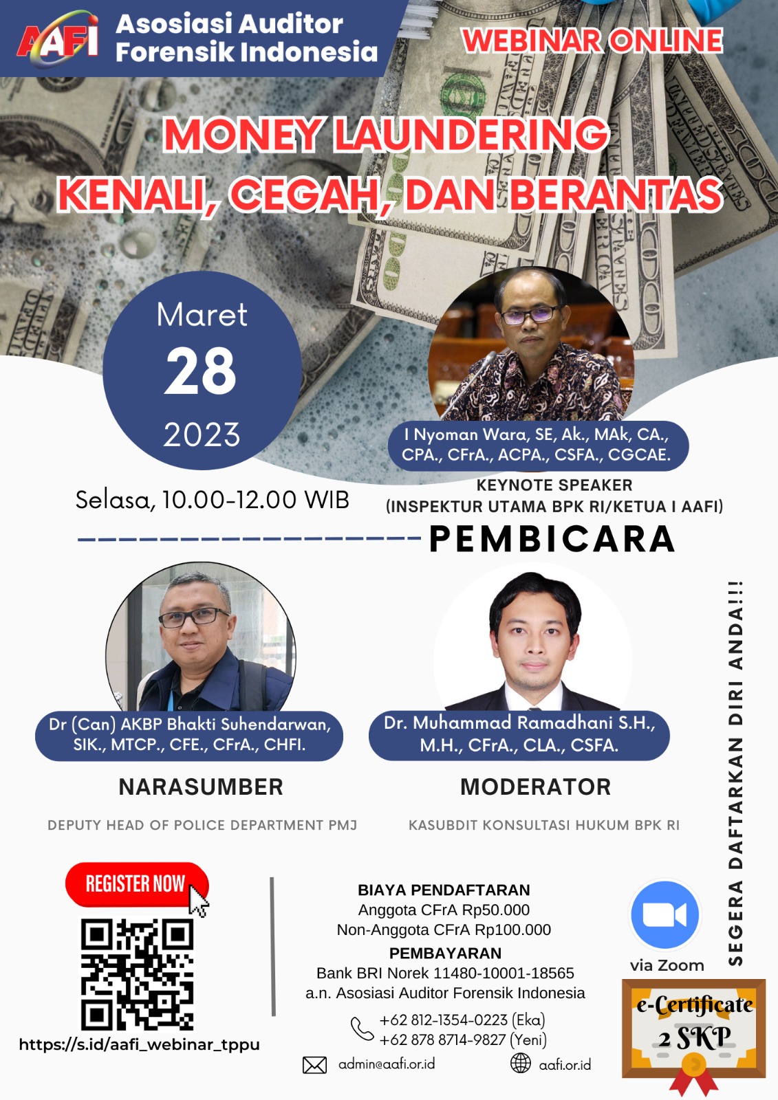 Asosiasi Forensik Auditor Indonesia (AAFI ENDOKISI) mengundang Bapak/Ibu dalam Webinar Online dengan Tema MONEY LAUNDERING, KENALI, CEGAH, DAN BERANTAS